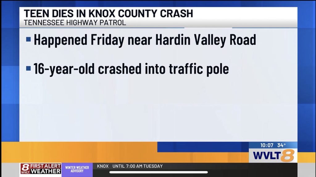 “The Tennessee Highway Patrol said a teen died in a crash near Hardin Valley Road in Knox County on Friday. According to a THP preliminary report, a 16-year-old, who was not identified, was driving a 2015 Acura northbound on Ball Camp Byington Road and tried to pass another car. At the intersection to go straight […]